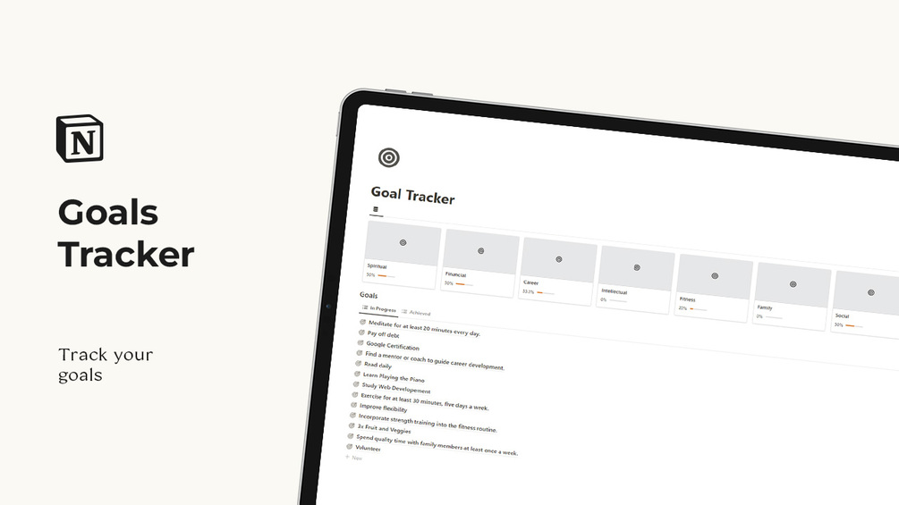 Keeping track of your goals is an important step to reaching them! With this minimal template, you can keep track of all your goals by life areas.