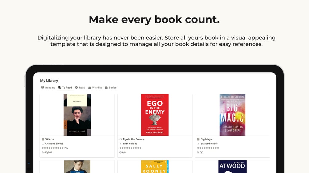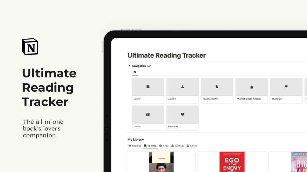 A more powerful version of your traditional reading journal that features 10+ interlinked pages crafted to help you organize your reading life in one, visually appealing, tracker.