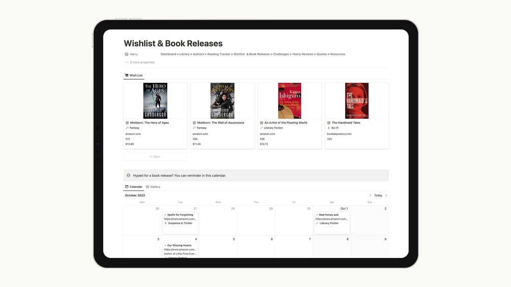 ⦁ Wishlist, Book Release Calendar